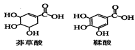 莽草酸是一種合成治療禽流感藥物達菲的原料,鞣酸存在于蘋果、生石榴等植物中。下列關于這兩種有機化合物的說法正確的是![]()