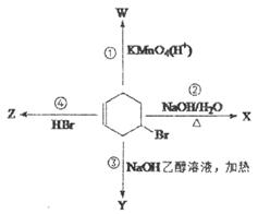 下圖表示4-溴環(huán)己烯所發(fā)生的4個不同反應(yīng)。其中,產(chǎn)物只含有一種官能團的反應(yīng)是![]()