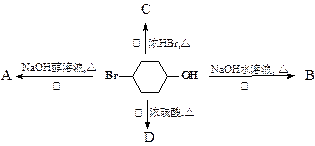 下圖表示4-溴-1-環(huán)己醇所發(fā)生的4個(gè)不同反應(yīng)。其中產(chǎn)物只含有一種官能團(tuán)的反應(yīng)是![]()