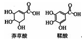 莽草酸是一種合成治療禽流感藥物達菲的原料,鞣酸存在于蘋果、生石榴等植物中。下列關于這兩種有機化合物的說法正確的是( )。![]()