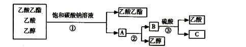 下圖是分離乙酸乙酯、乙酸和乙醇混合物的實驗操作流程圖![]()