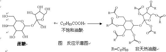 天然油脂結(jié)構(gòu)的核心為甘油[HOCH2CH(OH)CH2OH],有一瘦身用的非天然油脂,其結(jié)構(gòu)的核心則為蔗糖(C12H22O11),該非天然油脂可由直鏈型的不飽和油酸(C17H33COOH)與蔗糖反應(yīng)而得,其反應(yīng)示意圖如圖(注:圖的反應(yīng)式不完整)則下列說法不正確的是![]()