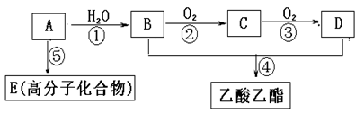 現(xiàn)以A為主要原料合成乙酸乙酯及高分子化合物E,其合成路線如下圖所示![]()