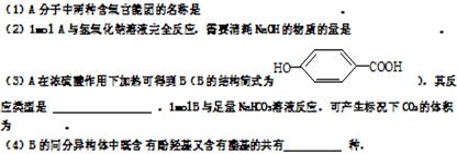 (6分)莽草酸是合成治療禽流感的藥物——達(dá)菲(Tamiflu)的原料之一。莽草酸是A的一種異構(gòu)體。A的結(jié)構(gòu)簡式如下:![]()