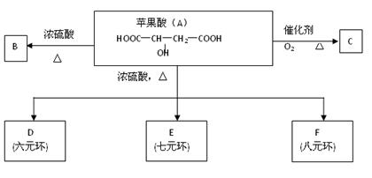 (14分)據(jù)報道,一種名為蘋果醋(ACV)的濃縮飲料風靡美國。蘋果醋是由蘋果發(fā)酵而成的酸性飲品,具有解毒、降脂、減肥和止瀉等功效。蘋果酸是這種飲料中的主要酸性物質。已知:在下列有關蘋果酸(A)的