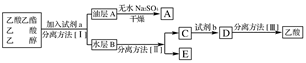 (4)現(xiàn)擬分離粗產(chǎn)品乙酸乙酯、乙酸和乙醇的混合物下列框圖是分離操作步驟流程圖:![]()