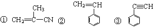 ①CH2=C(CN)CH=CHOH ②CH3COOH ③CH2=C(CN)CH3