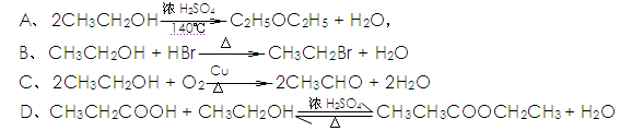 | C.乙醇與濃硫酸共熱至170℃ | D.乙醇與乙酸的反應(yīng) |