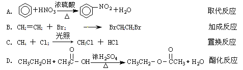 | D.苯制環(huán)己烷、乙酸乙酯水解 |
