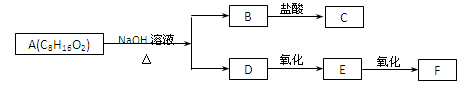 某有機(jī)物A(C8H16O2)能發(fā)生下圖所示的變化,其中C與F是同分異構(gòu)體。則符合該條件的A的同分異構(gòu)體有![]()