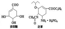 甲型H1N1流感在全球蔓延,百姓談“感”色變。目前通過從香料八角中提取的莽草酸制得的達(dá)菲是抗禽流感病毒特效藥物。下列有關(guān)描述不正確的是![]()