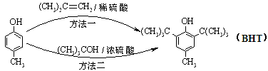 BHT(Butylated Hydroxy Toluene)是一種常用的食品抗氧化劑,合成方法有如下兩種:![]()