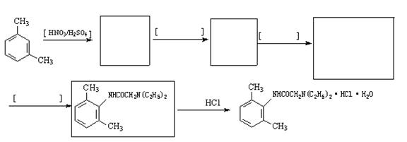(4)從雷諾嗪合成路線得到啟示,可用間二甲苯、ClCH2COCl、(C2H5)2NH(無機(jī)試劑任用)合成鹽酸利多卡因,請?jiān)跈M線上補(bǔ)充反應(yīng)物,在方框內(nèi)補(bǔ)充生成物。