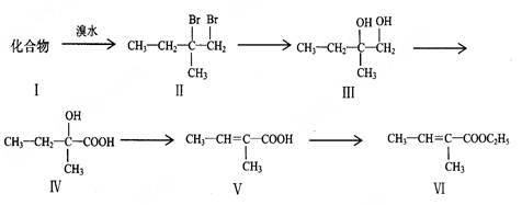 下面是以化合物Ⅰ為原料合成一種香精(化合物Ⅵ)的合成路線,反應(yīng)在一定條件下進(jìn)行;衔铫鰪V泛用于香精的調(diào)香劑。![]()