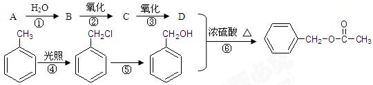 (5分)乙酸苯甲酯可提高花或水果的芳香氣味,常用于化妝品工業(yè)和食品工業(yè)。下圖是乙酸苯甲酯的一種合成路線(部分反應(yīng)物、產(chǎn)物和反應(yīng)條件略去)。![]()