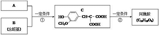 A與芳香族化合物B在一定條件下反生成C,進(jìn)一步反應(yīng)生成抗氧化劑阿魏酸(見下圖)![]()