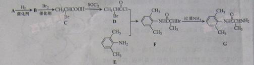 室安卡因(G)是一種抗心率天常藥物,可由下列路線合成;![]()