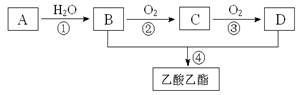 現(xiàn)以A為主要原料合成乙酸乙酯,其合成路線如圖所示。![]()