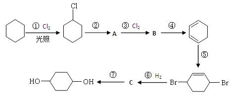 1,4-環(huán)己二醇可通過(guò)下列路線合成(某些反應(yīng)的反應(yīng)物和反應(yīng)條件未列出):![]()