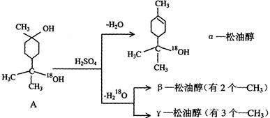 (10分)松油醇是一種調(diào)香香精,它是α、β、γ三種同分異構(gòu)體組成的混合物,可由松節(jié)油分餾產(chǎn)品A(下式中的18是為區(qū)分兩個羥基而人為加上去的)經(jīng)下列反應(yīng)制得:![]()