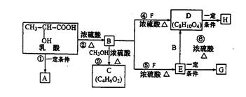 (10分)乳酸分子式為C3H6O3,在一定的條件下可發(fā)生許多化學反應,下圖是采用化學方法對乳酸進行加工處理的過程,其中A、H、G為鏈狀高分子化合物。