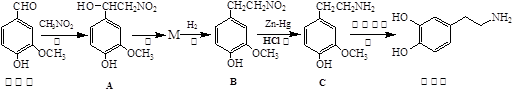(14分)多巴胺是一種重要的中樞神經傳導物質,用來幫助細胞傳送脈沖的化學物質,能影響人對事物的歡愉感受。多巴胺可用香蘭素與硝基甲烷等為原料按下列路線合成:![]()