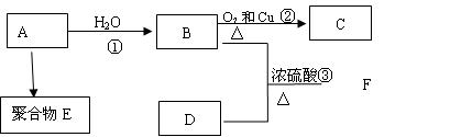 氣體A的產(chǎn)量是衡量一個國家石油化工發(fā)展水平的標(biāo)志,D是食醋中的主要成分。A能發(fā)生以下轉(zhuǎn)化:![]()
