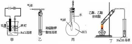 | C.裝置丙:驗證HCl氣體在水中的溶解性 | D.裝置。簩嶒炇抑迫∫宜嵋阴 |