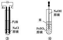下列各圖示中能較長(zhǎng)時(shí)間看到Fe(OH)2白色沉淀的是![]()