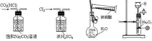 | A.除去CO2中的HCl | B.干燥Cl2 | C.稀釋濃硫酸 | D.制備少量O2 |