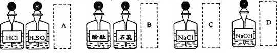 實(shí)驗(yàn)室中的藥品常按物質(zhì)的性質(zhì)、類別等有規(guī)律地?cái)[放。現(xiàn)有部分藥品按某種規(guī)律擺放在實(shí)驗(yàn)桌上,如下圖。做“硫酸的性質(zhì)”的實(shí)驗(yàn)時(shí),某同學(xué)取用BaCl2溶液后,應(yīng)把它放回的位置是 ( )![]()