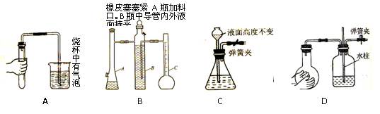 下列各圖所示裝置的氣密性檢查中,能說明裝置漏氣的是![]()