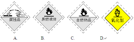 從化學(xué)試劑商店購買的某些試劑瓶上常貼有危險(xiǎn)化學(xué)品的標(biāo)志。盛裝濃硫酸的試劑瓶上所貼的危險(xiǎn)化學(xué)品標(biāo)志是 ![]()