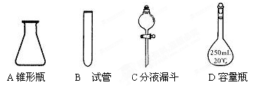 實(shí)驗(yàn)室中配制250mL 0.10mo1·L-1NaOH溶液時(shí),必須使用到的玻璃儀器是( )![]()