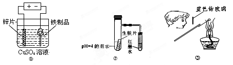 | A.用圖①裝置在鐵制品表面鍍鋅 |