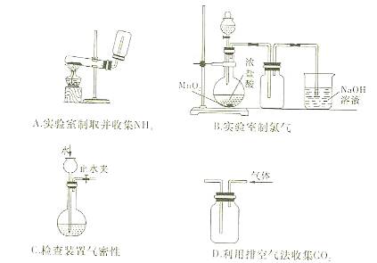 下列實(shí)驗(yàn)裝置圖所示的實(shí)驗(yàn)操作或?qū)嶒?yàn)儀器,不能達(dá)到相應(yīng)實(shí)驗(yàn)?zāi)康牡氖?![]()