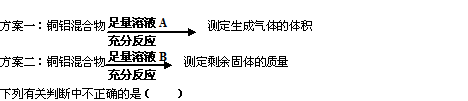 | B.若溶液B選用濃硝酸,測(cè)得銅的質(zhì)量分?jǐn)?shù)偏小 |