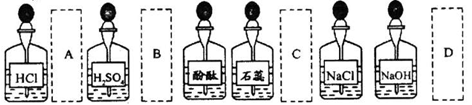 實(shí)驗(yàn)室中的藥品常按物質(zhì)的性質(zhì)、類(lèi)別等有規(guī)律的擺放,F(xiàn)有部分藥品按某種規(guī)律擺放在實(shí)驗(yàn)桌上,如下圖。做“硫酸的性質(zhì)”的實(shí)驗(yàn)時(shí),某同學(xué)取用BaCl2溶液后,應(yīng)把它放回的位置是![]()