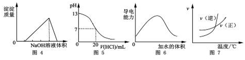 | A.圖4表示向某硫酸和硫酸鋁混合溶液中加入NaOH溶液,沉淀質(zhì)量與加入NaOH溶液體積的關(guān)系 |