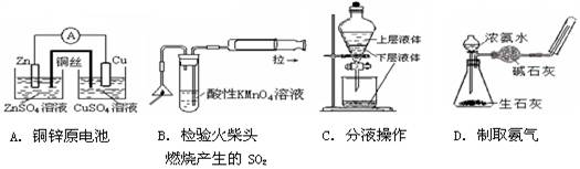 用下列實(shí)驗(yàn)裝置進(jìn)行的實(shí)驗(yàn),能達(dá)到相應(yīng)的實(shí)驗(yàn)?zāi)康牡氖? ( )![]()