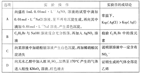 下表中的實(shí)驗(yàn)操作能達(dá)到實(shí)驗(yàn)?zāi)康幕蚰艿贸鱿鄳?yīng)結(jié)論的是 ( )![]()