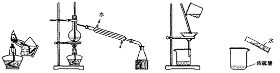 點(diǎn)燃酒精燈 蒸餾 過濾 稀釋濃硫酸[