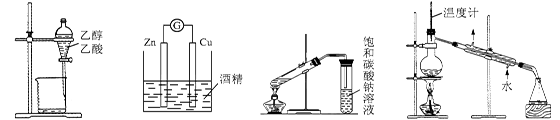 | A.除去乙醇中的乙酸 | B.形成原電池 | C.制取乙酸乙酯 | D.石油的蒸餾 |
