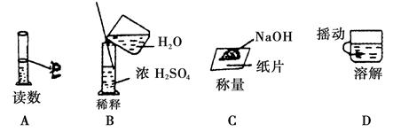 | D.配制硫酸溶液時,可先在量筒中加入一定體積的水,再在攪拌下慢慢加入濃硫酸。 |
