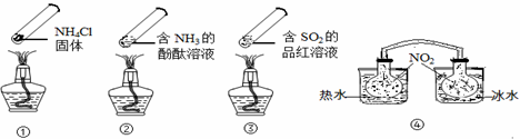 | C.④中,浸泡在熱水中的容器內(nèi)氣體顏色變深,浸泡在冰水中的容器內(nèi)氣體顏色變淺 |