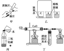| B.乙實(shí)驗(yàn)既可以說(shuō)明分子在不停地運(yùn)動(dòng)著,又可以說(shuō)明氨水顯堿性 |