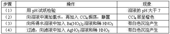 某無色溶液中只可能含有①Na+ 、②Ba2 +、③Cl一、④Br一、⑤SO32一、⑥SO42一離子中的若干種(忽略水電離出的H+、OH-),依次進行下列實驗,且每步所加試劑均過量,觀察到的現(xiàn)象如下。![]()