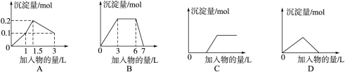 下列曲線圖(縱坐標(biāo)為沉淀的量,橫坐標(biāo)為加入物的量)與對應(yīng)選項不正確的是![]()