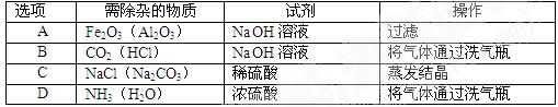 | B.Fe2O3(Al2O3)加入過量的NaOH溶液、過濾 |