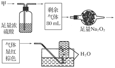 無色的混合氣體甲,可能含NO、CO2、NO2、NH3、N2中的幾種,將100 mL甲氣體經(jīng)過下圖實驗的處理,結(jié)果得到酸性溶液,而幾乎無氣體剩余,則甲氣體的組成為( )![]()